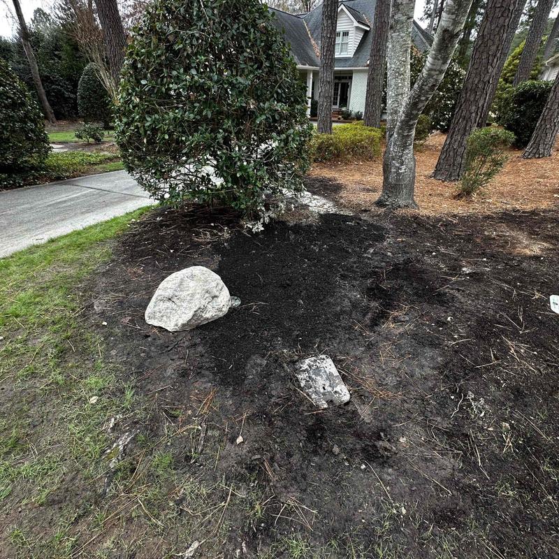 VAC TRUCK SERVICES completed a plumbing service in Durham, NC, involving the excavation and replacement of a damaged underground pipe. The work included removing debris and roots from the pipe area, installing a new pipe section with visible sealing, and restoring the ground with fresh soil and mulch. A vac truck was used on-site for excavation and cleanup.