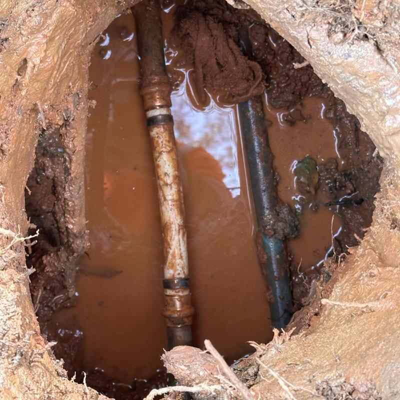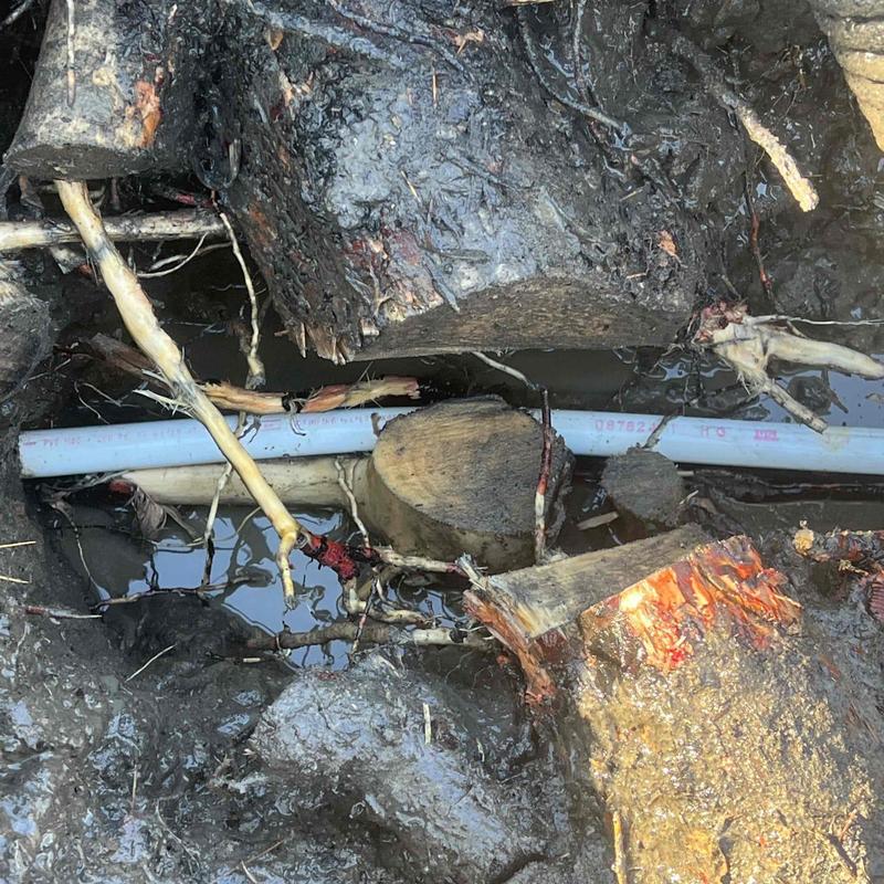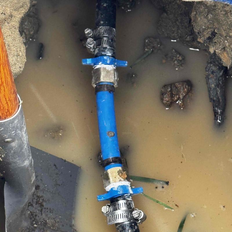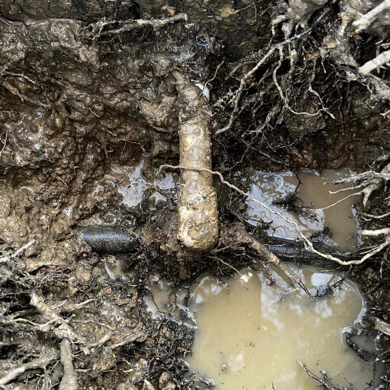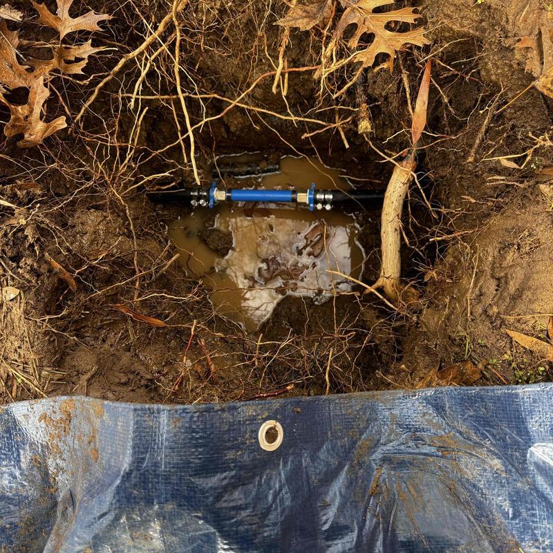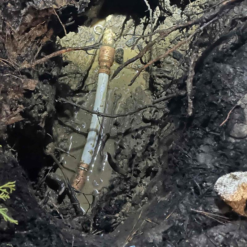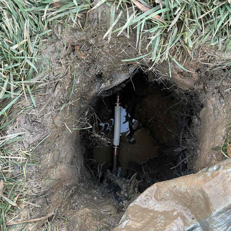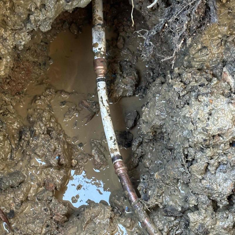 VAC TRUCK SERVICES completed a copper pipe repair at a residential site in Lebanon, TN. The work involved excavating muddy soil to access and replace a damaged copper line, restoring the plumbing connection and stopping the water leak.