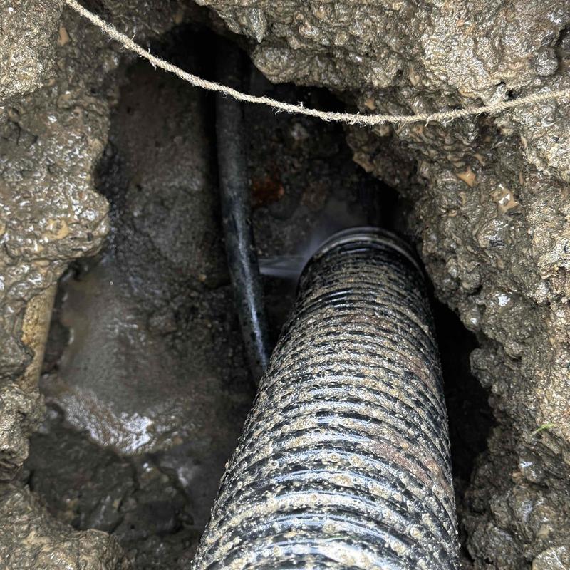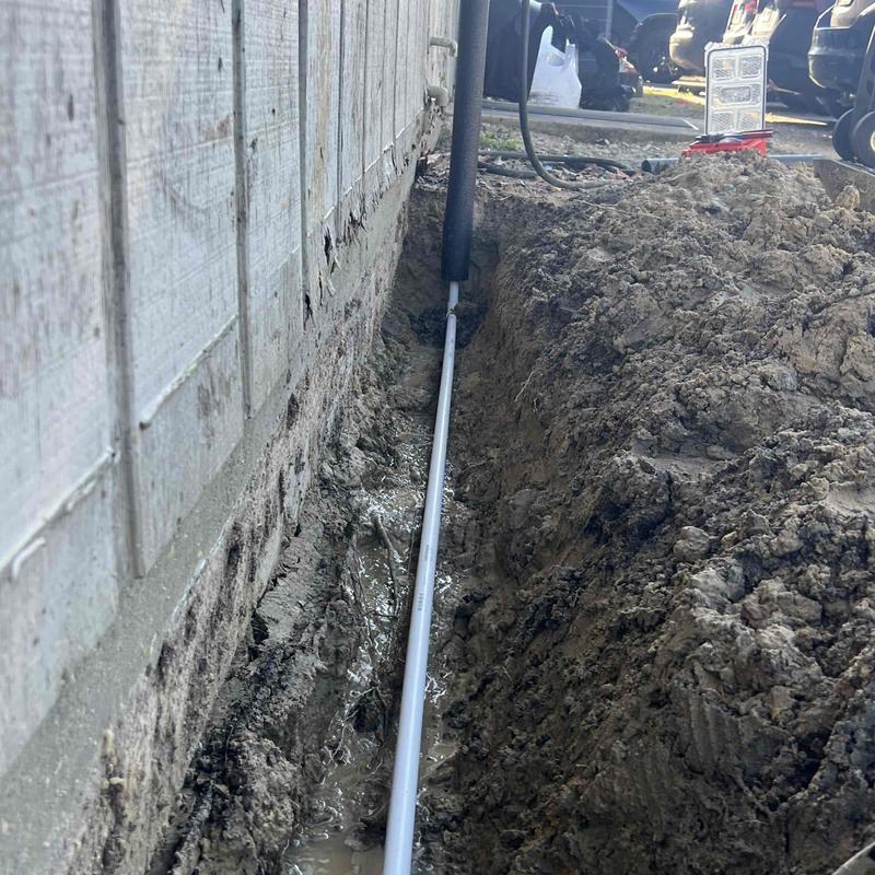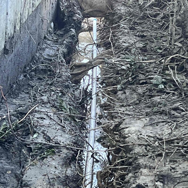 VAC TRUCK SERVICES completed underground pipe repair and installation in Charleston, SC. The work included trench excavation along a driveway and connecting new PVC piping to existing plumbing lines, addressing issues with the infrastructure beneath the surface.