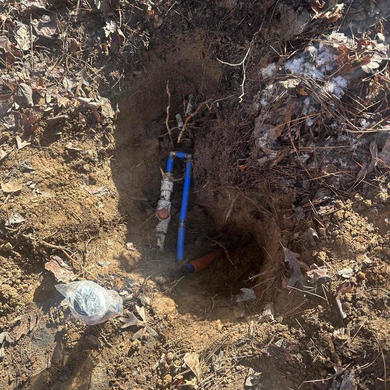 VAC TRUCK SERVICES completed plumbing repairs at a residential property in Greenville, SC. The work included excavating soil to access underground piping, replacing damaged pipes and fittings, and reconnecting the water supply lines. The area was then backfilled and tidied near the driveway and landscaping.