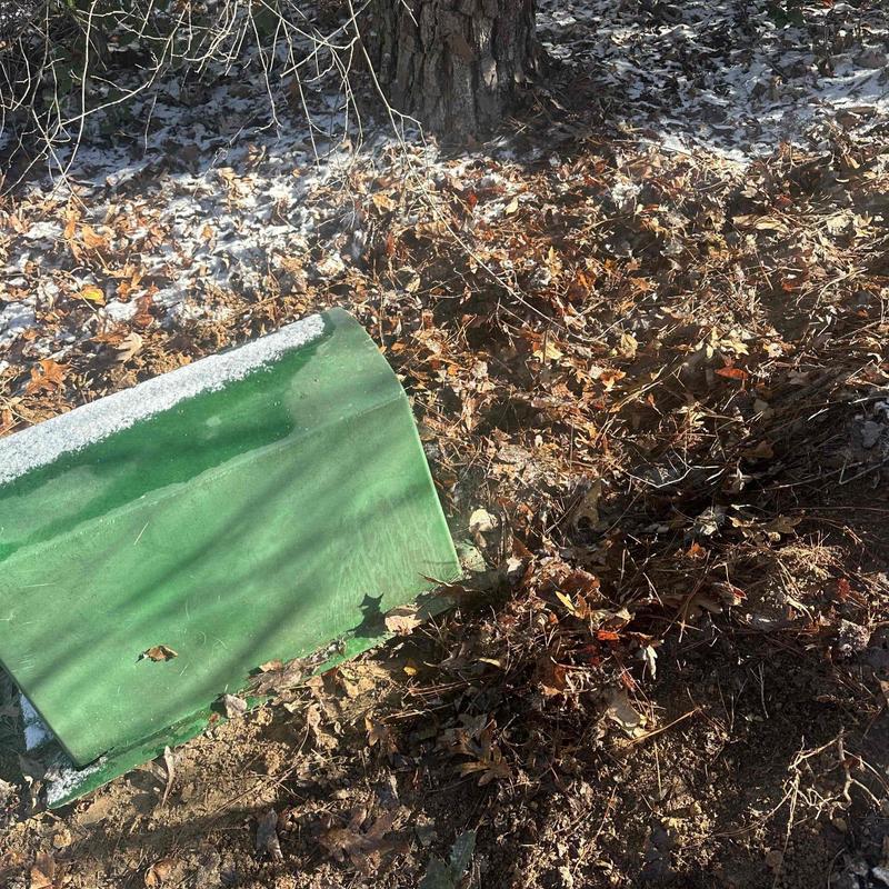 VAC TRUCK SERVICES completed excavation and cleanup work at a commercial location in Conover, NC. The job involved removing a large pile of soil near a tree and bike rack, restoring the area to its original state with exposed ground and roots, supported by the use of a vacuum truck on site.