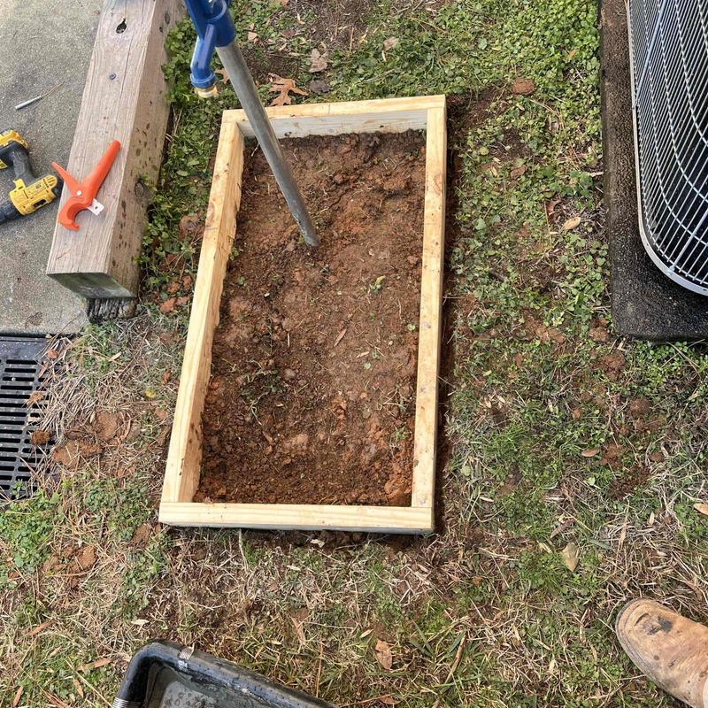 VAC TRUCK SERVICES performed plumbing work in Charlotte, NC, involving excavation near the house foundation to access underground piping. The job included unearthing and possibly repairing or installing water lines, followed by soil replacement and site cleanup. A vacuum truck was utilized to assist with the excavation and debris removal.