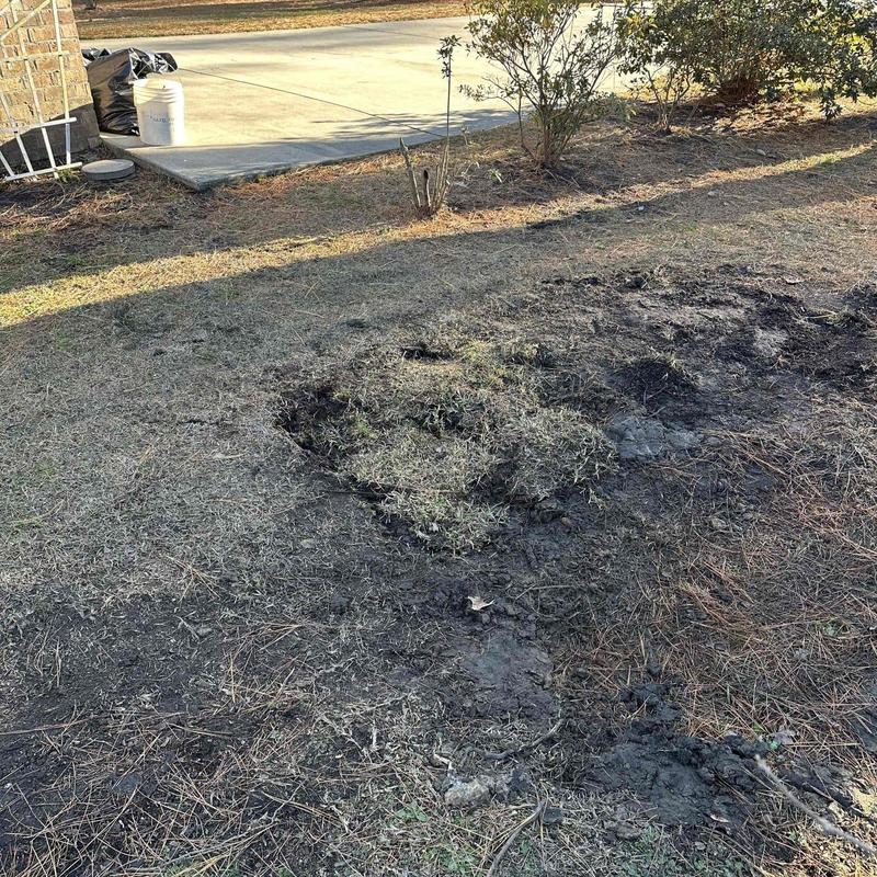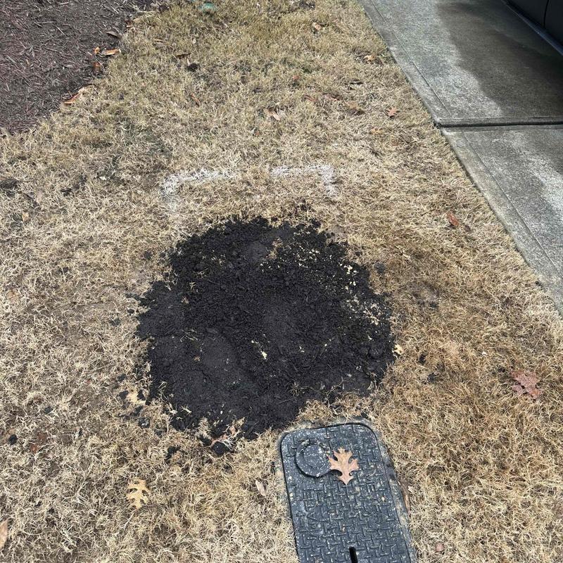 VAC TRUCK SERVICES conducted pipe repair and excavation work at a residential site in Charlotte, NC. The service involved uncovering and exposing a section of underground piping, followed by soil excavation and partial refilling with fresh dirt. A vacuum truck was used to assist in precision digging and debris removal.