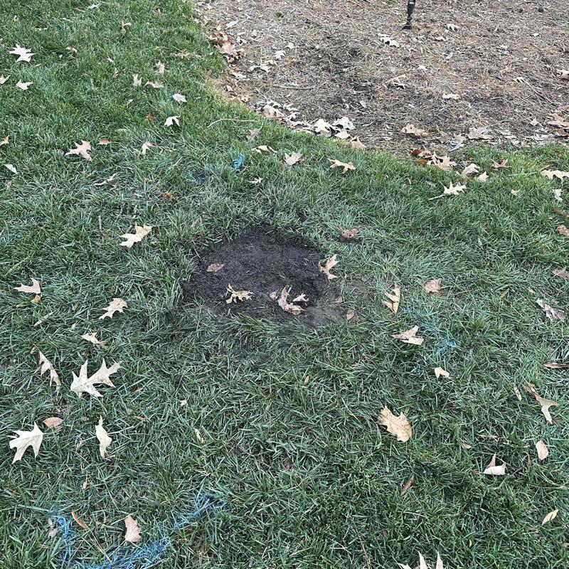 VAC TRUCK SERVICES performed excavation and cleaning of an underground pipe in a residential lawn in Winston-Salem, NC. The work involved digging to access the pipe, followed by using specialized equipment to remove debris and ensure the pipe was clear of obstructions.
