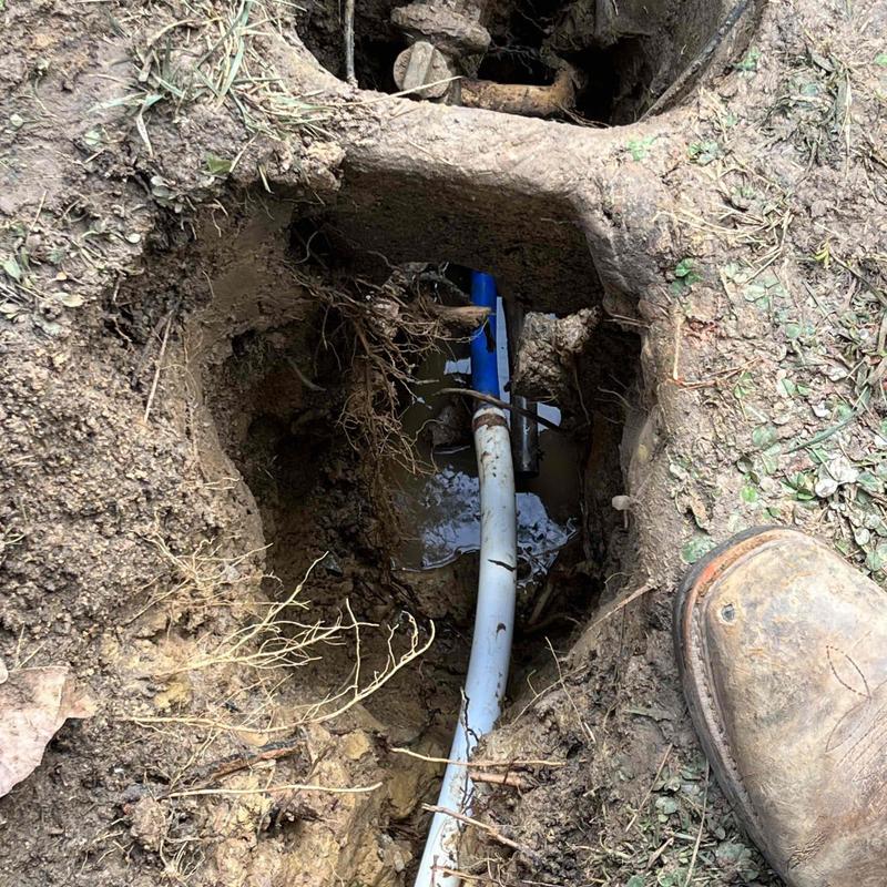 VAC TRUCK SERVICES performed a plumbing repair in Charlottesville, VA. The work involved excavating soil to access underground pipes, inspecting and repairing plumbing lines surrounded by tree roots, and using specialized vacuum truck equipment to aid in the service.