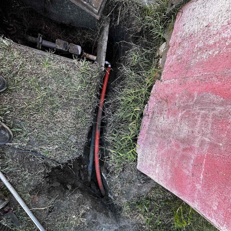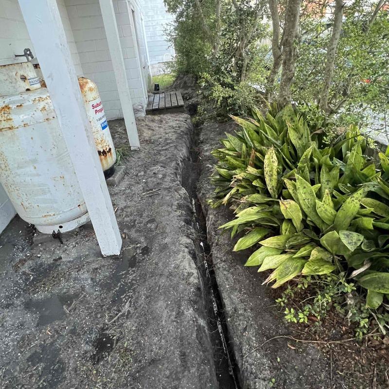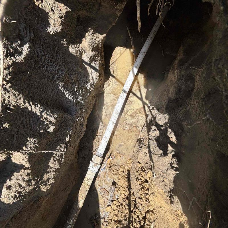 VAC TRUCK SERVICES completed underground pipe repair and installation in Charleston, SC. The work included trench excavation along a driveway and connecting new PVC piping to existing plumbing lines, addressing issues with the infrastructure beneath the surface.