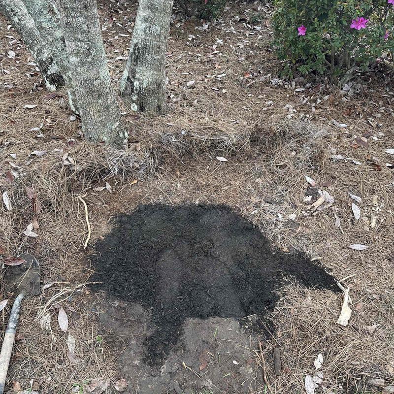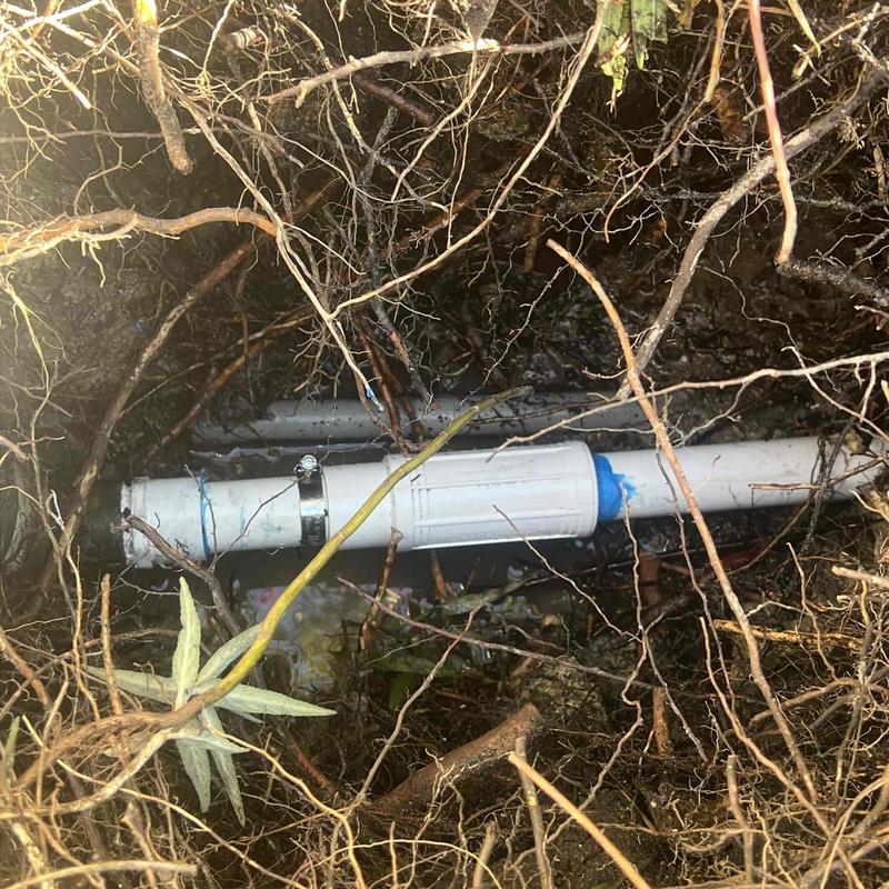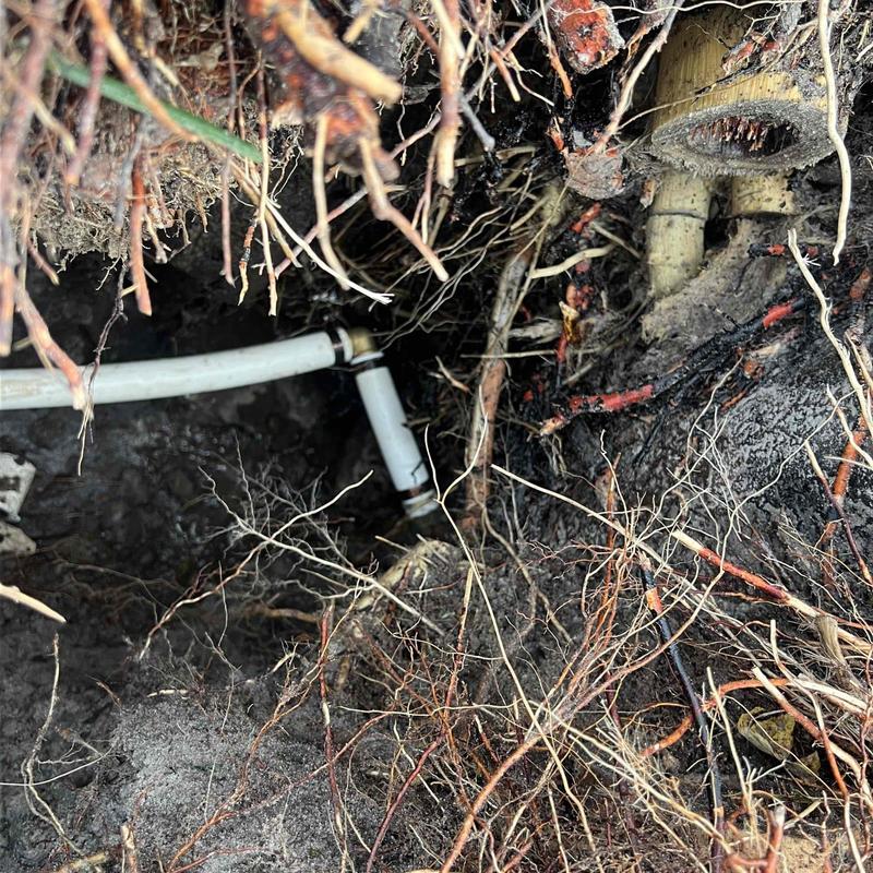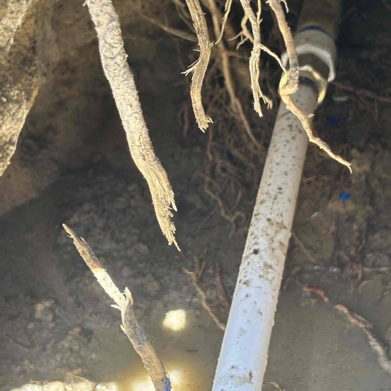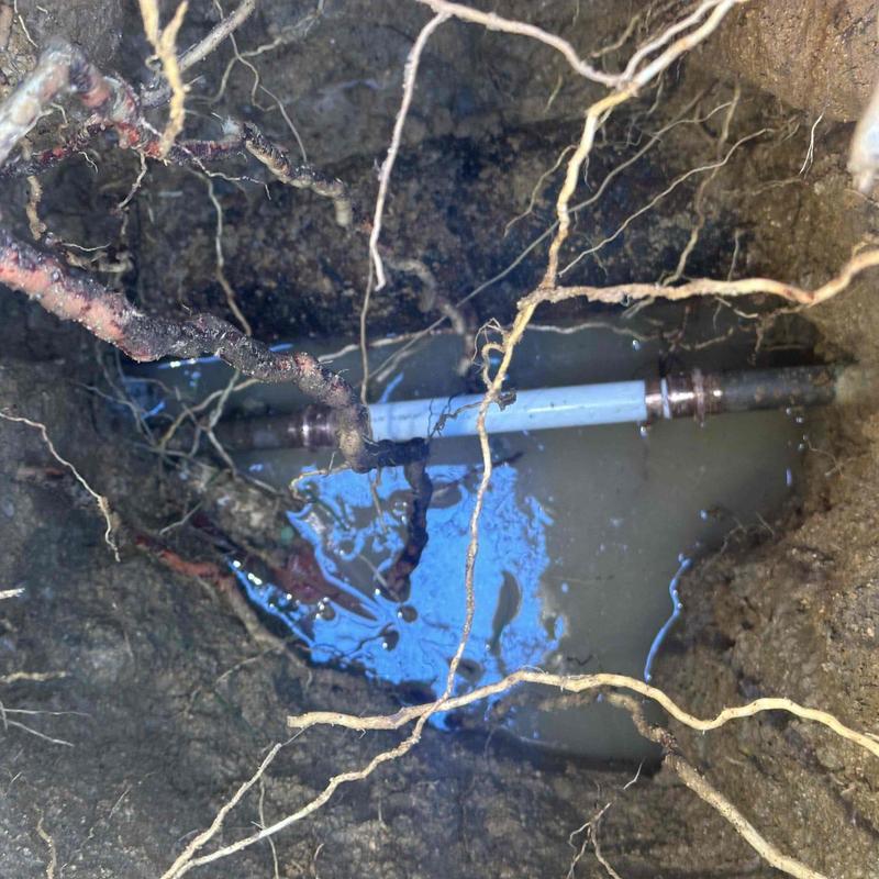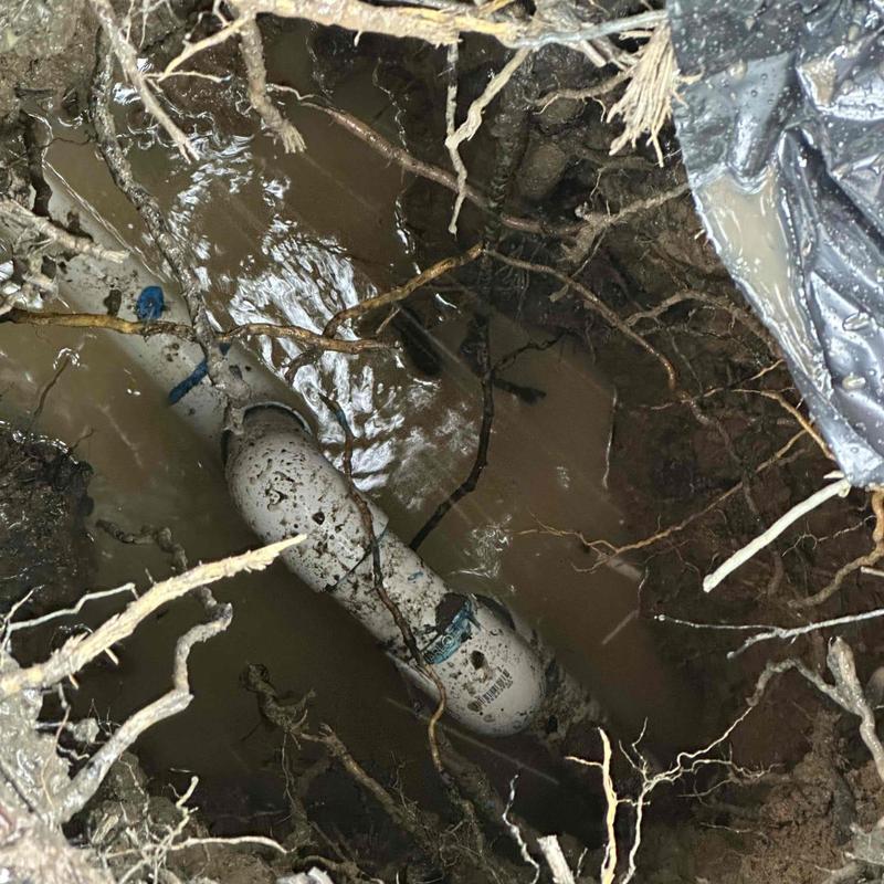 VAC TRUCK SERVICES completed pipe repair work in Charleston, SC. The job involved excavating soil and tree roots to expose and replace damaged PVC plumbing pipes. After the repair, the excavation site was backfilled and covered with soil and landscaping mulch to restore the area.