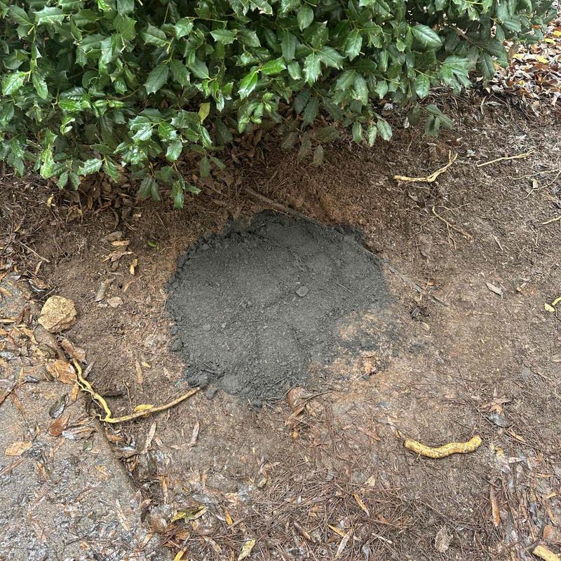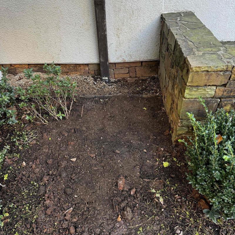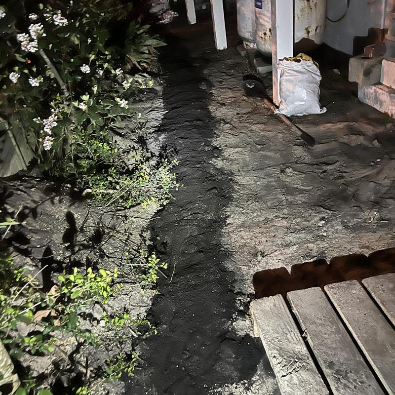 VAC TRUCK SERVICES completed plumbing repairs in Raleigh, NC, involving the excavation of soil to expose damaged underground pipes. The work included removal of deteriorated pipe sections and backfilling the area afterward, restoring the site near a residential foundation and landscaping.
