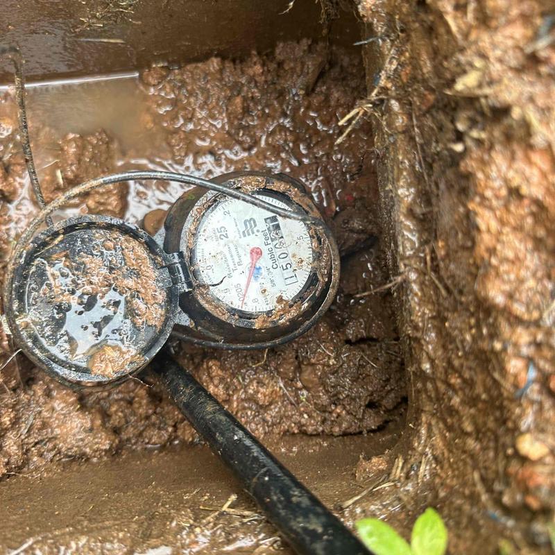 VAC TRUCK SERVICES performed excavation and cleaning of an underground water meter and valve at a residential property in Conyers, GA. The work involved digging around the utility components to access and clear debris, utilizing a vacuum truck for mud and sediment removal, ensuring the area was clean and accessible.
