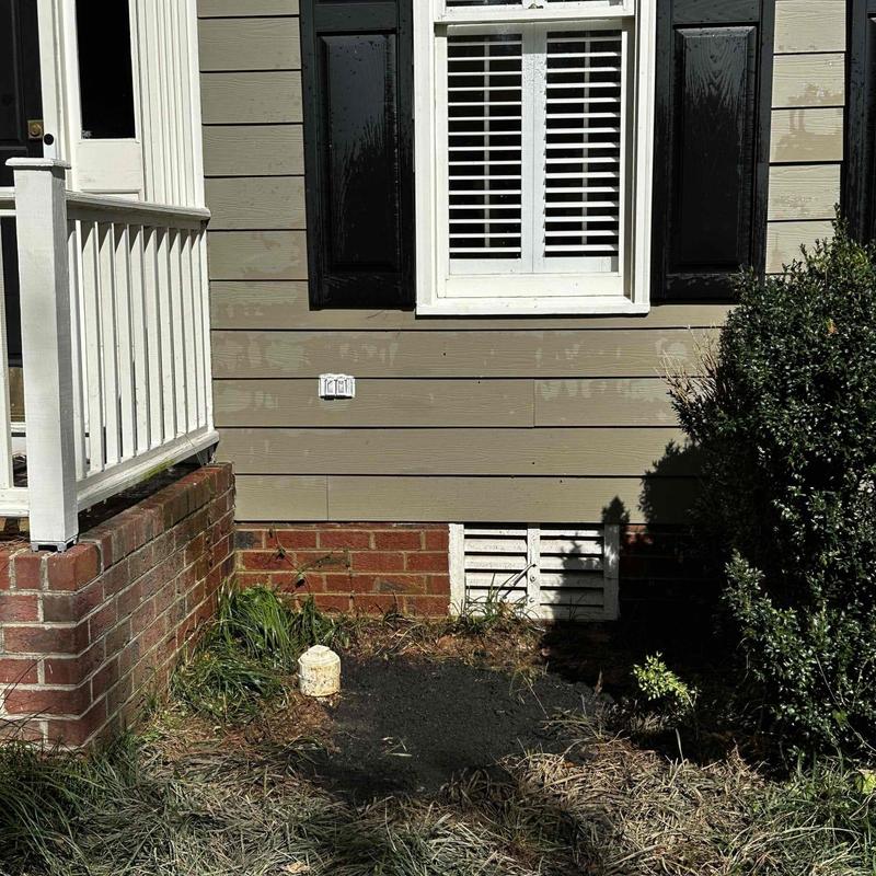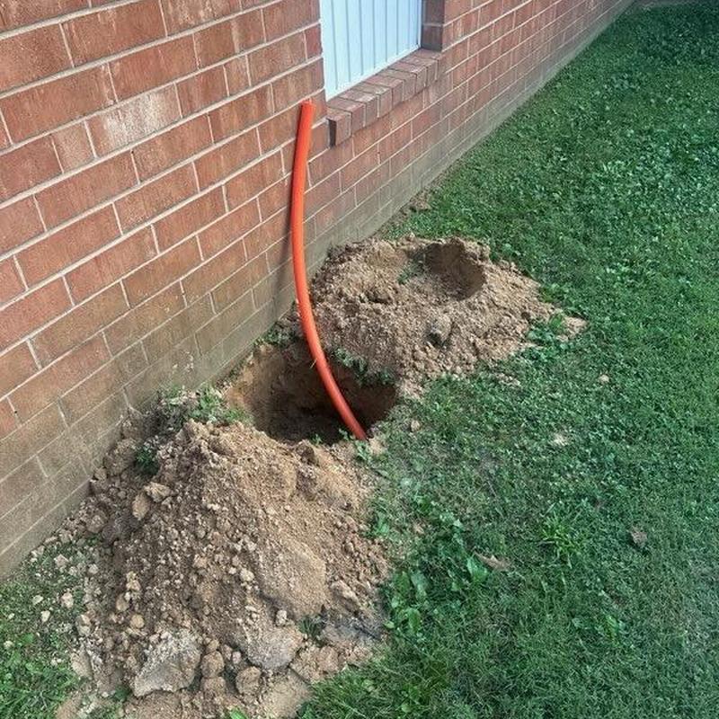 VAC TRUCK SERVICES performed plumbing repairs at a residential property in Kingsport, TN. The work involved excavating a section of ground near the house to access and replace damaged underground pipes. The area was dug up around the foundation, and new piping was installed to restore proper function.