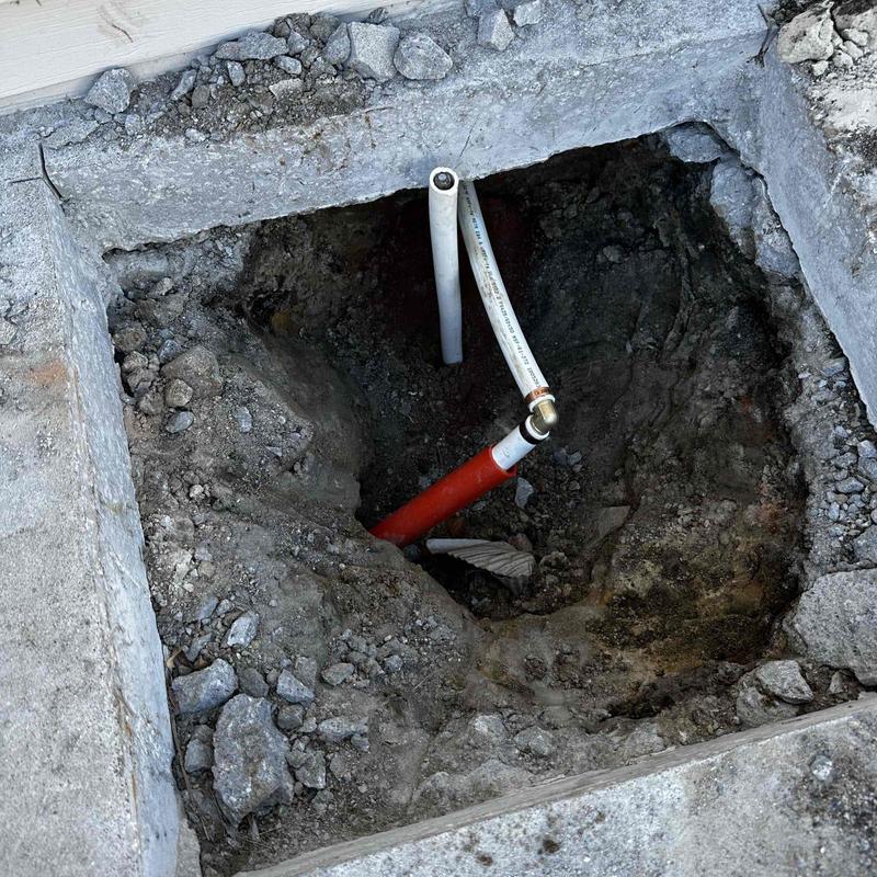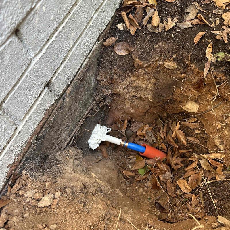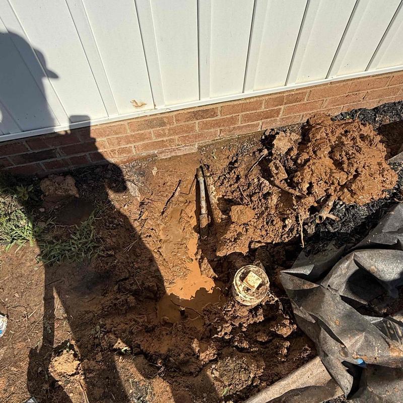 VAC TRUCK SERVICES performed plumbing work in Charlotte, NC, involving excavation near the house foundation to access underground piping. The job included unearthing and possibly repairing or installing water lines, followed by soil replacement and site cleanup. A vacuum truck was utilized to assist with the excavation and debris removal.
