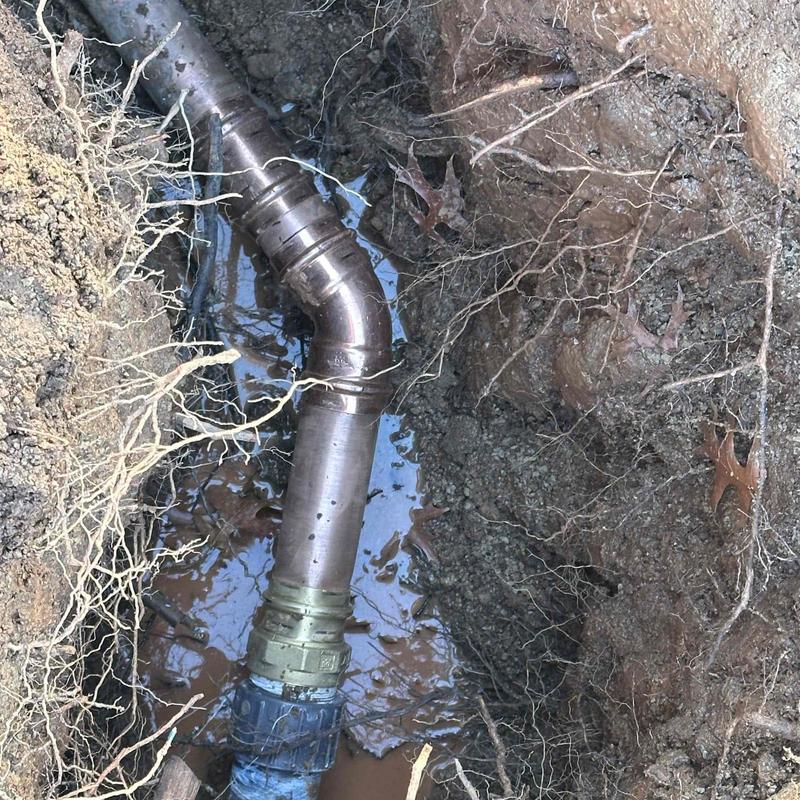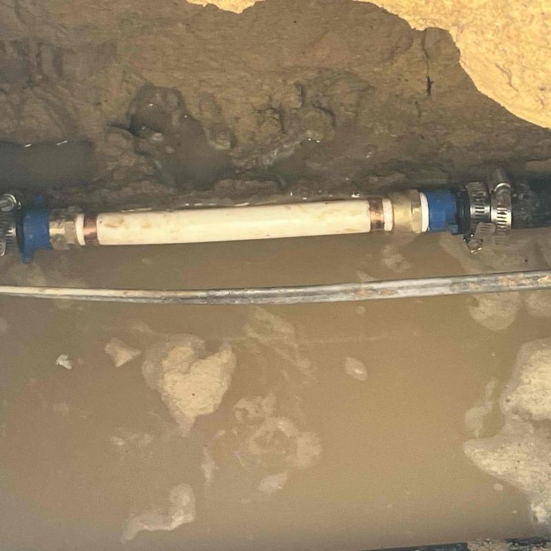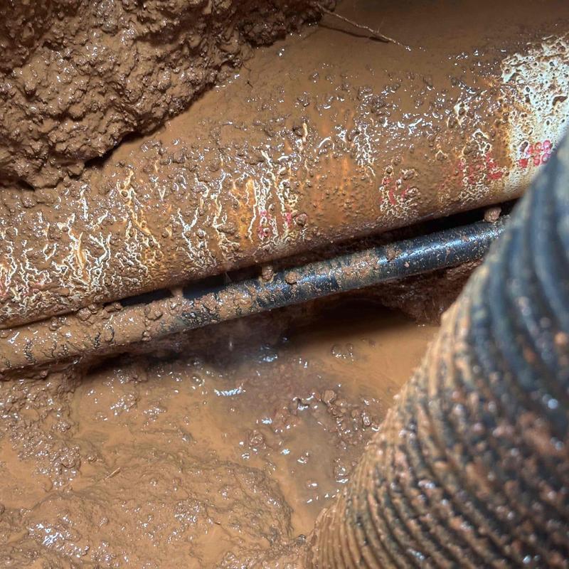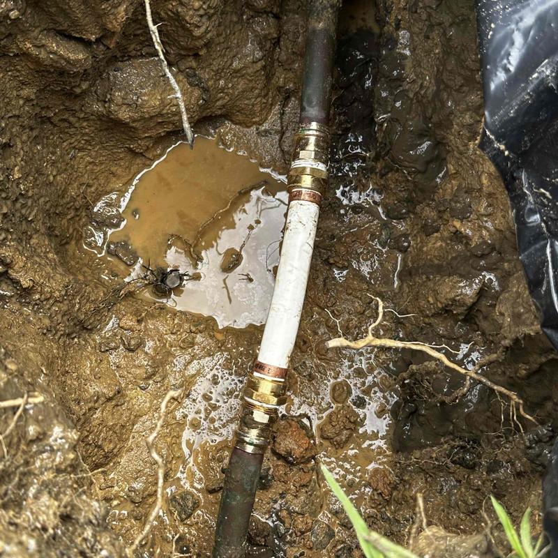VAC TRUCK SERVICES completed a copper pipe repair at a residential site in Lebanon, TN. The work involved excavating muddy soil to access and replace a damaged copper line, restoring the plumbing connection and stopping the water leak.