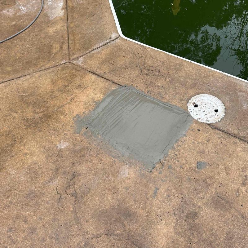 VAC TRUCK SERVICES completed a plumbing repair in Fayetteville, NC, involving excavation to access and replace damaged or blocked PVC pipes beneath a concrete surface near a pool. The area was then patched with fresh concrete, and vacuum trucks were used for cleanup and debris removal.