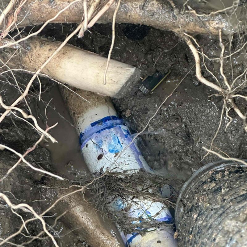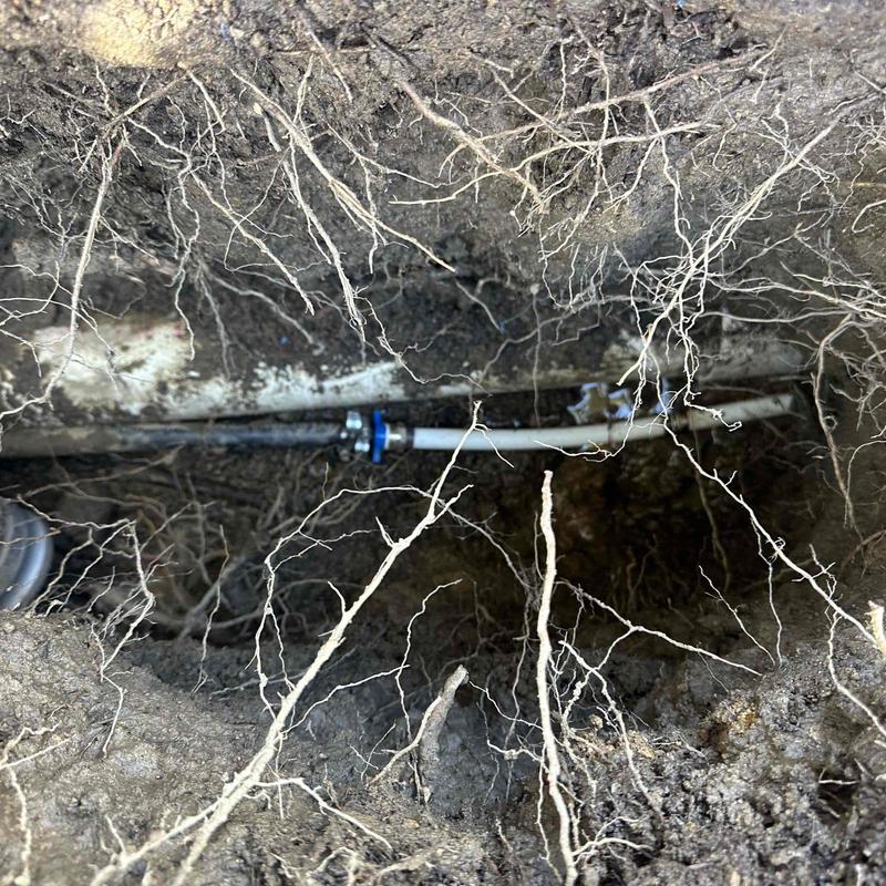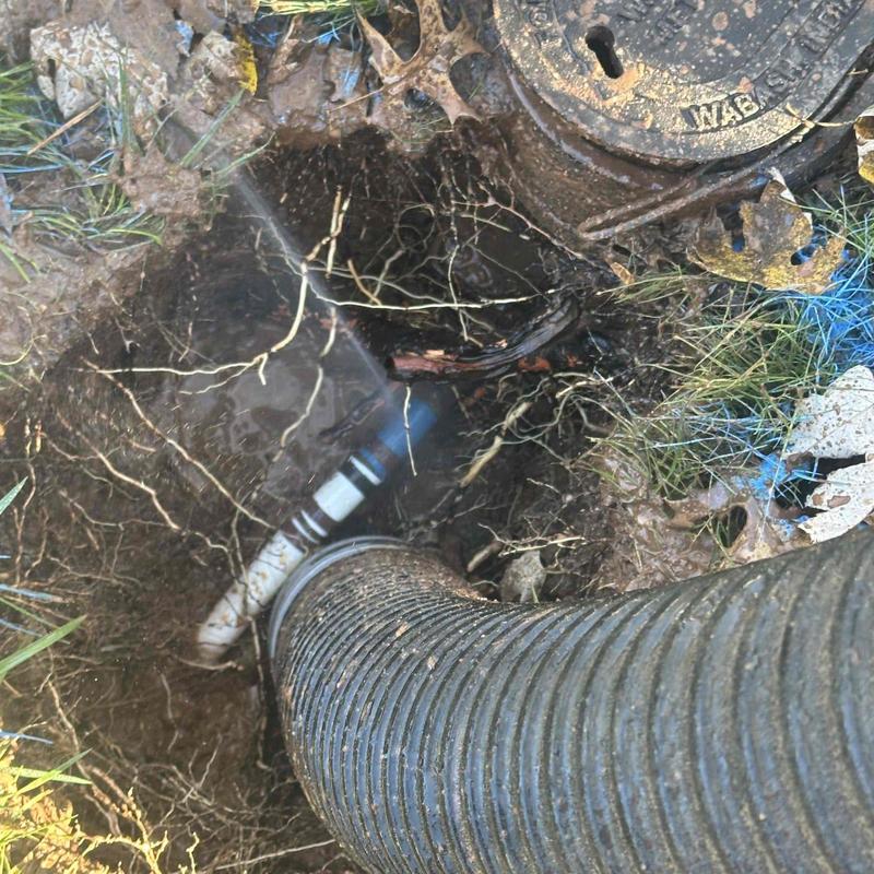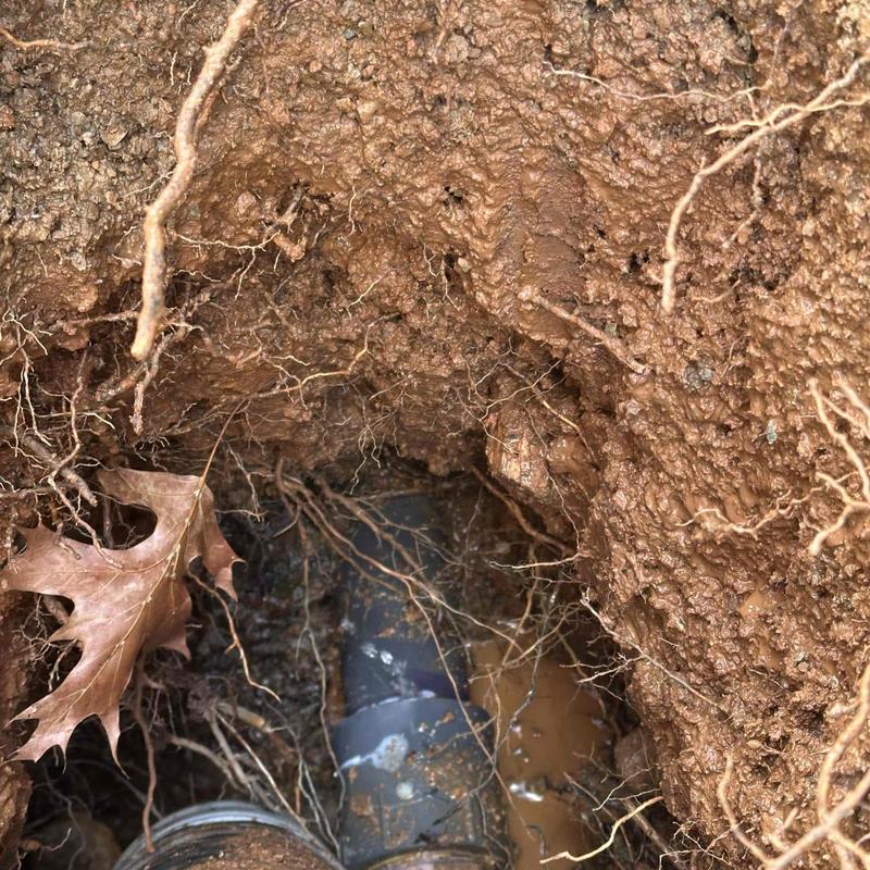 VAC TRUCK SERVICES performed a plumbing repair in Charlottesville, VA. The work involved excavating soil to access underground pipes, inspecting and repairing plumbing lines surrounded by tree roots, and using specialized vacuum truck equipment to aid in the service.