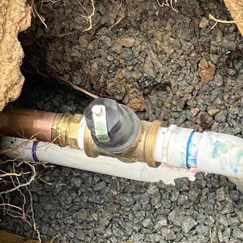 A technician in Pineville, North Carolina performed hydro-excavation to expose a leaking one-inch main water line. They replaced the damaged section with PEX pipe, pressure tested the system at 60 psi, and confirmed no leaks. The technician backfilled the area and installed a new pressure-reducing valve due to a blockage in the existing one.
