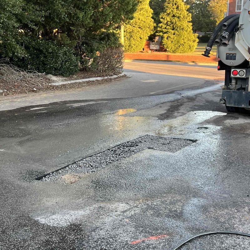 Vac truck crews in Durham, North Carolina used hydro-excavation to support underground repair and asphalt replacement. This method allowed for precise debris removal and safe access to buried infrastructure without damaging nearby surfaces. The area was restored with fresh asphalt after work was completed.