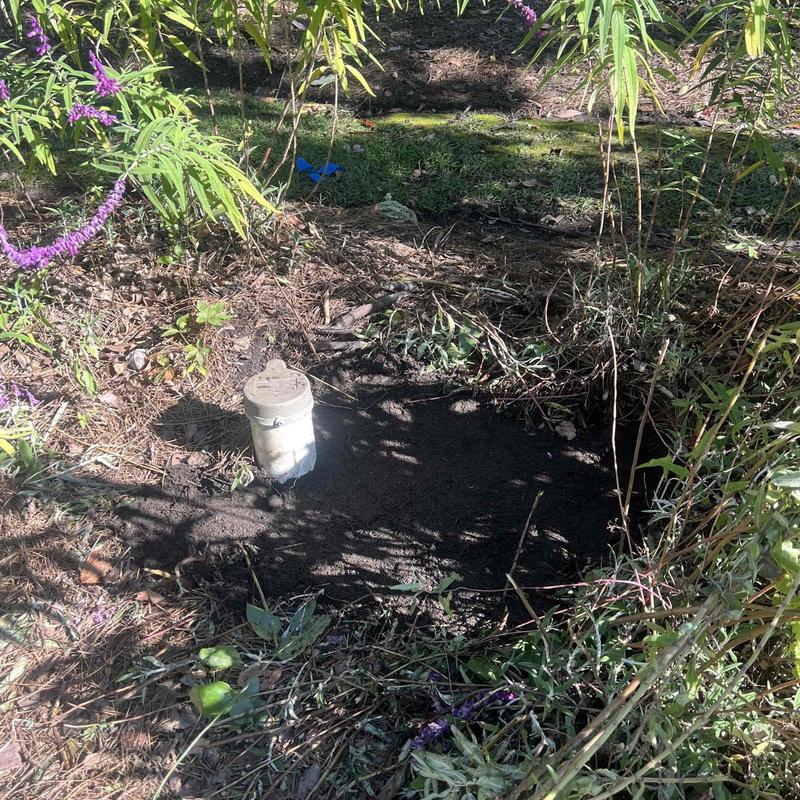 VAC TRUCK SERVICES completed a plumbing service in Durham, NC, involving the excavation and replacement of a damaged underground pipe. The work included removing debris and roots from the pipe area, installing a new pipe section with visible sealing, and restoring the ground with fresh soil and mulch. A vac truck was used on-site for excavation and cleanup.