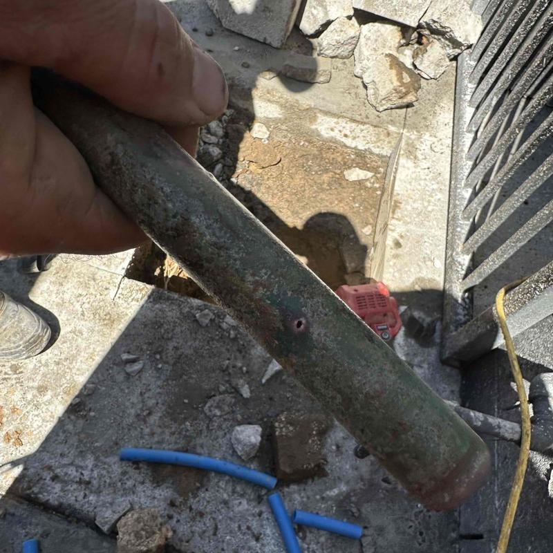 A vacuum truck crew in Raleigh, North Carolina used hydro excavation to expose a leaking three-quarter inch copper pipe beneath concrete. Technicians removed the damaged section, installed new fittings and pipe, and restored water service. The meter showed no flow after repair, confirming the leak was fixed.