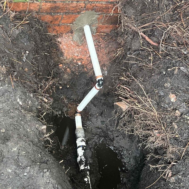 Technicians in Durham, North Carolina located a damaged sewer line beside a driveway. They hydro-excavated to depths of 2 and 12 feet, jackhammered surrounding concrete, and replaced the broken pipe with new fittings. They also adjusted indoor water pressure by servicing the pressure-reducing valve (PRV).